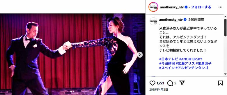 二人の出会いは、米倉涼子さんが2019年頃に趣味で始めたアルゼンチン・タンゴがきっかけでした。